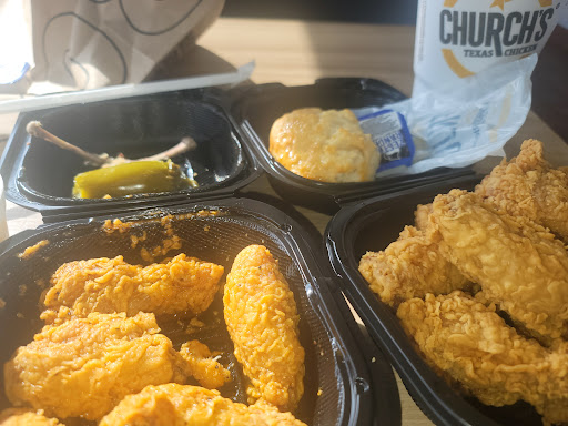 Ā Ā Ā Read moreWhile the chicken & okra were wonderful, it took me @ least 40min (from parking to driving away). For a take out fried chicken restaurant this was far too long. The ordering windows were very disorganized & were where I spent most of my time, though the # of people in the store ordering weren't that many. I realize they may have be getting phone & online orders as well but still... The reason for the low score on atmosphere is because the dining area is very small & there weren't really any tables & chairs ment for eating @ inside the resturant. The couple they had, had people waiting for take out orders sitting @ them or were surrounded by others, (also waiting for take out orders) milling around them. They were out of the pies which really disappointed me since they looked delicious on the picture. I may try Church's Chicken again next time I'm in the city, but probably not...