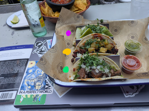 The purple dot is the carnitas taco. Carnitas has never been my personal favorite; however, the pieces of carnitas that were in this taco were great. The outside of the meat was grilled with a little crust finish that was delicious. Carnitas is just not my favorite glass of bourbon, if you know what I mean. Maybe if I go back and just get the Carnitas tacos on a different night/day, it will be different.