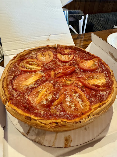 I am trying to figure out how this restaurant has anywhere near an overall 5 star rating after the terrible experience my family had last night. Our dining experience at this location may be the worst we have ever had. Upon entering, the restaurant had maybe 5-6 other tables seated, the rest of the place was empty. My family was party of 3 and requested to be seated at a booth. While being escorted to our booth, there was a large puddle of water in front of the booth. No problem, we waited for her to get a rag to wipe it up. The hostess also made us aware that any pizza we ordered would be at least a 45 min wait, which we knew deep dish takes longer so ok. Next, Our waiter took our drink order and entire dinner order without writing a single thing down. He brought two drinks and had to come back to re-ask my sonâs drink order. He then returned 10 mins later to re-ask what toppings we wanted on our pizza. He said âsorry yall, I havenât slept in like 3 daysââŠwhat the heck. Are people being trained to not write down families orders?? Iâve never seen this before. While waiting for our food, we discovered another puddle of water in front of our booth. It appeared to be coming from some type of leak from behind the booth. Unfortunately my coat had slid off our booth partially touching the floor and was now wet from the puddle of water. We alerted the hostess and she sat a wet floor sign in front of our booth and said someone would be over to mop it up, I wonât go into much detail but know that who ever she called to mop it up was not happy about it and was arguing in front of customers. The hostess came over well over the 45 minute mark to apologize for the wait and offered us a free appetizer. We had only ordered one pizza with 2 toppings. We were given mozzarella sticks to hold us over. Which I was thankful for. However, after we ate the sticks, our waiter neglected to clear our dirty dishes. We had a stack of 3 dirty glasses, the dish holding our appetizer, and silverware sitting at the edge of the table to be cleared. Those dirty dishes stayed there until our departure. We also observed our waiter being told to clear a table from a party that left 20 mins after we arrived. He was knowingly slamming dishes around being ridiculously loud as if throwing a fit like a child being told to clean his mess. It was RIDICULOUS. My son also told us he heard cussing and fighting in the kitchen. Our pizza arrived and was not piping hot. After the prolonged wait, we expected at least a piping hot pizza that would have been immediately brought to our table to be served. It was clear it had sat back on the counter a while. It was warm and going cold around the edges. After all that, our pizza was boxed up without the cardboard circle supporting it and got extremely soggy and turned to mush. We are unable to even eat the leftovers. Our bill included a side of artichoke that I was never even brought. We were charged over 75$ for the meal, 10$ to park, and left totally disappointed. I think that this easily is the worst in dining experience Iâve ever had. My family is from Indiana, we had a long day at the hospital and were looking forward to the Chicago experience while having a simple deep dish pizza. I feel sorry for the hostess. She seemed to be the only one attempting to hold the place together. All around horrible experience, we will...