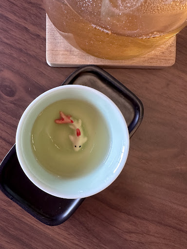 That and it became evident really quickly that counter guy had friends sitting in the central table and they were chatting. No other patrons. We sat down and drank our tea but if felt fairly awkward. After we sat we found out we maybe didn't have to order the $15 pot of tea (which was much more than we expected to pay) but that wasn't clear. It was also nice to see the digital menu with all the tea options, but that was after we had ordered up front.