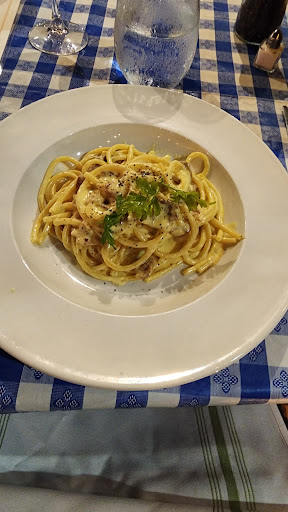 For the main course, the carbonara is creamy and flavorful. While it would be ideal to use guanciale or pancetta instead of bacon, the dish still delivers a satisfying taste.