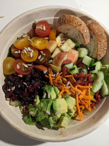 Read moreI've tried this place twice in two weeks. First time I only ordered a strawberry and banana smoothie. It was okay, but not great and it was already pre-made and not made fresh. The second time I went in and ordered a Chicken Caesar Salad and got one of the promotional Sesame Street reusable bowls (which is VERY cute!! đ) and I like that I can bring it back each time to use and get a small discount. The bowl itself is small but a good portion for a Salad made fresh, which was good. The only downside to this place is how expensive it is. I know everything is inflated but it's a lot to ask to pay for a small Salad. The bread that came with the salad was delicious, to bad it was only worth two bites and very small. Glad I got the cute reusable bowl but not sure how often I'll get to reuse it. The staff was friendly and helpful. I also had a promo for free cookie, but the staff had a hard time redeeming it for me but gave me the small cookie anyway. I would go back for the salads and maybe the wraps, when I can...
