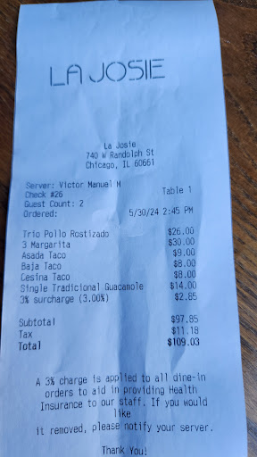 My friends and I had dinner at La Josie’s to celebrate a promotion on Valentine’s Day. The service that we had was abhorrent. From the moment that we were seated, we felt rushed, unwanted in the establishment and looked at as if we weren’t equal patrons. Our waitress and multiple bus boys visited the table every 3-4 minutes, making us feel not only uncomfortable but as if she was sent as a deterrent to prevent us from running out on the bill. She continued to frequent the table although no other table experienced what we did. After we ordered and received our food, less than 10 minutes after, we were constantly accosted by both the waiter and the busboy, continually asking if we would like boxes, if we’d like them to wrap our food up for us and if we wanted the check. We declined each time, and we were asked if we wanted our bill 3-4 times. After declining it the final time, another waitress then came to our table with the bill advising that she’d just “leave it there there for us” and she was “just assisting our waitress”. Our bill total was $290 amongst the 3 of us. The bill had a small service charge already added and after the service we received, we opted not to leave an additional tip. After we paid our bill, we stood in the vestibule doorway waiting on the valet. We were then accosted by the “manager” or “supervisor” on duty, asking why we had not left a tip and asking if there was an issue with the service. To which we explained how our experience was, how we felt uncomfortable and unwanted and how we felt unwelcomed in the restaurant as if we were less than. The “manager” or “supervisor” then began to argue with us advising how he disagreed and he believed that the tip was deserved since there were additional bartenders and other people involved. To this, we stated that the waitress was a representative of the restaurant and if that was the only representation that we had, it was poor. He continued to argue with us about how we were wrong and he disagreed and attempted to bully us into leaving a tip. The experience was disgusting, disappointing and we will never frequent this...