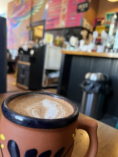 Read moreSupport this amazing little place! This is a very authentic Latinx cafe with traditional drinks on the menu. They have almond and oat milk for us vegans. I really enjoyed my Cubanito with oat milk and 2 shots of espresso. My husband's Cafe de Olla was amazing and perfect for cold weather/holiday. SKIP THE STARBUCKS! Get a spicy Cafe de Olla instead! It does not come with milk, but next time I would totally ask for a cup of cold oat milk on the side to stir in. They also have a hot chocolate with espresso called a Dirty Abuelita. The person who took my order was incredibly friendly and genuine and had a ton of knowledge about the menu. They have a handful of things for sale like booties and mugs. They have sandwiches and pastries, none of which seem to be vegan at this time. We did not have a hard time finding free parking close by. There is ample seating inside and they have late hours on Mondays. Beautiful old building. There is a piano and fireplace, although neither were in use when we were there. Wifi and outlets as well as a restroom are available. It was not busy. Highly recommend this place, great to chill and study or take...