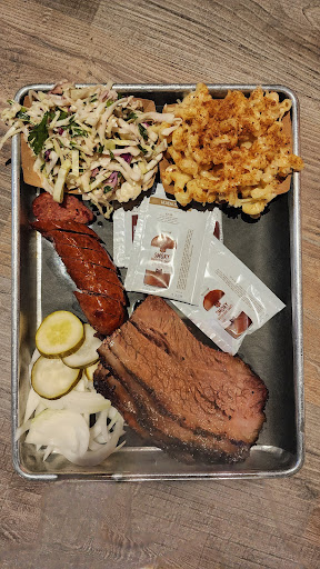 I'm able to give 5 stars because my criticisms are only based on my own nit pickin and is unfair to deduct a star because this place is AWESOME! Great staff, appealing environment, the sauces are a treat in themselves. The flavors are spot on, great cuts of meat, decent portions, and price is appropriate for the quality of food. The fact they serve sweet tea in Chicago is an anomaly in itself but, and the ability to give you diabetes after one gulp is a staple for anyone from the south to enjoy with good BBQ (it's insanely delicious). The (cold smoked?) Brisket is not something I'm used to when eating BBQ, I'm used to the fat melting into the meat during the long smoking process, causing it to fall apart once you take a bite, with that being said, cold smoking is a real art form, and they've nailed it, so if that's your cup of tea, this is the place for you! The collards are top notch, cooked just right, just firm enough yet cooked long enough so you get all of the flavors that come out after cooking the hell out of them with ham hocks (this is also an art, you have to cook them a very long time to get the flavor, yet you don't want them mushy, again they nailed it) 5 stars, great place, thank you for such a...