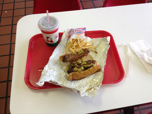 My reason for going there is to get a hot dog. The type offered is the traditional Chicago style Vienna brand hot dog with the usual assortment of trimmings, which includes onions, tomatoes, pickles, relish, and sport peppers, served on a poppy seed bun. The dogs come wrapped in paper with French fries rolled in. The dogs are good and the buns are properly steamed for warming. The fries, however, are too soft and greasy. The price is reasonable. For example, two dogs with fries is $4.89. The folks that work there are friendly and helpful.