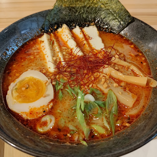 Spicy Roasted Garlic Ramen (with veggie broth) – 10/10 Generous portion and packed with flavor. I opted for the veggie broth instead of pork, and it held up really well. Pro tip: adding the leftover dumpling sauce took it to the next level!