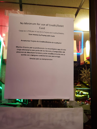Read moreWas confused when trying to add tip to the bill. My husband asked about the service charge but the person ringing up the check couldn't give us a straight answer. Just said it was a bank charge. At the time the service fee wasn't added to the final bill. It was on the bill but not added. I had to add it to the total then add tip. She had to finally re add it up correctly then we could pay. This notice should be in translated into English and displayed properly. My husband and I have no problems with paying for credit card service fees. It just felt wrong in how they go about doing business by not having signs clearly displayed. This notice on the door was at a level only a person 6 foot tall could read.I am 5 ft tall the sign is nearly at the top of the door and the tiny font is no help. Plus it is on the door leading out on the left as you walk in. The other sign is just as confusing taped on the register. This is a sit down restaurant and you pay at your table. The only reason we noticed the fee is because we were waiting to get the bill but, we had to leave. We just walked to the register to get our bill. We probably wouldn't have notice if the bill was just brought to our table. Its a shame because we're local and always support our local businesses. We liked coming here with our extended family but, we won't come back. Nothing wrong with the...