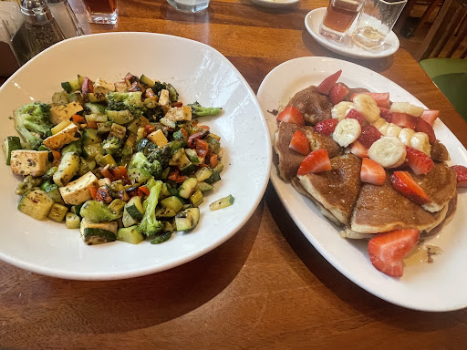 The restaurant offers a large array of menu items from omelets to skillets to crepes to waffles to pancakes...yeah it's overwhelming. The interior is very classy and many of the patrons dining seemed pretty affluent so it's a restaurant you should come to when you feel indulgent on special occasions. When we first arrived, we saw a girl that I think was the hostess, but we were actually greeted by a server, which a found a little odd. The hostess had a sour look on her face like she was annoyed to be there and was constantly sighing and rolling her eyes. These are common symptoms of a condition my friend calls #HOSTESSHATE, lol. Yup, this girl had full blown case of #HOSTESSHATE. Anyways, the server, who actually turned out to be our server led us to our seats and asked for our drink order. She was incredibly warm and welcoming, offering her personal favorites from the menu, as well as other recommended dishes.