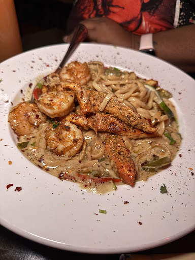 Read moreThis was my friend and I first time here, For starters, we were not greeted at the door we had to walk over to the bar to ask do we seat ourselves or wait on someone. The manger I’m assuming stated we have to wait to be seated. We waiting for some time for the waiter to come and tell us it was either a 20min wait or we could sit at the bar. (Which who did not wait us the entire time we were there) Ok fine we sit at the bar, we ordered drinks. If you’re a drinker you will definitely like their drinks because they are strong.(as for me I’m not much of a drinker, so it was strong for me) My food came about maybe 5-10mins before my friends did, and I felt bad I had my food before hers i ended up sharing with her. So I had about 5 little cut up chicken breast in my Alfredo pasta, the chicken was very very spicy. Luckily I love spice so it was fine, but I do feel like it was over spicy compared to other places that sells jerk chicken. Now don’t get me wrong the flavor was there for sure. My friend ordered the honey bourbon fish and she didn’t like the fact they poured the sauce on top of it because it was all over the plate and she couldn’t even dip her fish in it, but again the flavor was there. I ordered some wings to go for my husband and he was highly disappointed.( on the menu that you pull up on their site says you can get apple bourbon sauce on the wings when I asked this, they stated you can’t get that flavor on wings, so instead he got hot honey.) He said they were baby wings and it look like they cut up 5 wings and called it a “10 pice”. He said they were basic he had better wings at a asian restaurant. I also will say be prepared to over pay for your food as well. Because I’ve had these same dishes at other places for a much cheaper price and it...