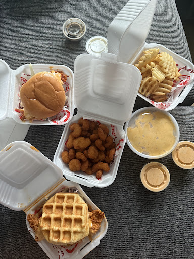 Read moreSurprised to see all of the low ratings on here. We really liked the food! We ordered the Chicken Waffle Sando at a Mild Cyrus spice level, the Chicken Sando at a hot spice level, an order of Waffle Fries, an order of the Mac and Cheese, and an order of the Popcorn Shrimp. My favorite was the Chicken Waffle Sando, it was better than I even expected it to be and they even give you a side of syrup for it that tastes so good when you dip it. I didn’t love the Mac and Cheese, I thought it was just ok but it was actually my husband’s favorite thing we ordered. I thought the popcorn shrimp was great, similar quality and taste to getting popcorn shrimp at Red Lobster and very good dipped in the pink sauce. You could also definitely tell the difference between the mild and hot sauce on the sandwiches, the hot was nice and spicy! We had it delivered and it was very fast delivery service! Overall a great experience and would recommend it and would order...