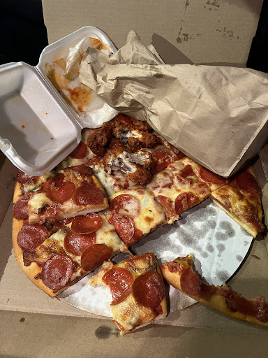 This was a bad experience. I ordered 5 wings (extra sauce), and a large pepperoni and mushroom pizza (with fries and liter cola). I paid for extra sauce on the wings but they seemed regularly sauced to me. The customer service lady looked almost offended that I asked where the extra sauce was. The wings were good, they were soggy just tasted bad. The pizza looked like it was going to be delicious but the crust was just a generic crust (reminded me of a frozen pizza like tombstone), the sauce was bland, and the cheese really didn’t have a taste.