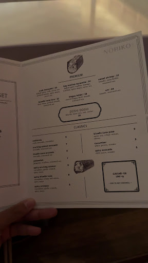 We really enjoyed the food and atmosphere, the chefs would explain every roll to us as it was served. If I had to wish for something, it would probably be to have a slower pace! We were only at the counter for 45 minutes, for the price point I expected a lengthier experience. I’d be interested to see if they decreased the size of these rolls to a smaller bite so we could try more of the options and really savor the evening. And they don’t have a dessert menu just yet but I would love to try that in the future. All in all, delicious food and drinks! Attentive service and I found it easy to talk with my sister but not overhear others...