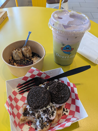 👋🏻 Hey fellow Google Maps users! ☺️ This was my first time visiting OverLay as part of the Yelp Experience. I took my best friend with me as my plus one. For starters, I’m obsessed with their cute logo of a blue shark on a floatie. 🦈❤️💙 Like sooo cute!!! ☺️ I was kind of indecisive on what to get even though I already looked at the menu before coming. I was debating between the ube smoothie with boba, ube milk tea with boba, & the hearbreak punch lemonade. I ended up getting the heartbreak punch lemonade which is strawberry lemonade. 🍓🍋 Casey, the owner of OverLay, recommended me to try it with lychee jelly. This was my first time trying lychee jelly, so I didn’t know what to expect. It was so good!!! I totally recommend if you’re looking for something fruity and refreshing to drink. 🥤 My best friend ended up getting the strawberry shortcake smoothie 🍰 and it was so good too!!! Honestly everything was delicious!