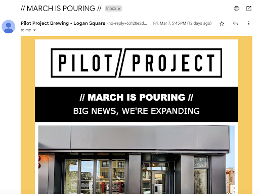 Read moreI like this place, it's the only bar in the city where I've consistently found good hard kombucha. But I got spam email from them in my inbox when I never consented to these emails. I never ever NEVER sign up for random spam emails from businesses and I never gave Pilot Project permission to send me emails through my Toast email. I only use Toast to order delivery and again I never consented to have my data sold to other groups. Pilot Project very obviously bought my data from Toast and it's just gross. My message to Pilot Project is to let your good drinks and yummy food speak for themselves, don't waste your money buying data to spam people from ever wanting to return to your business.