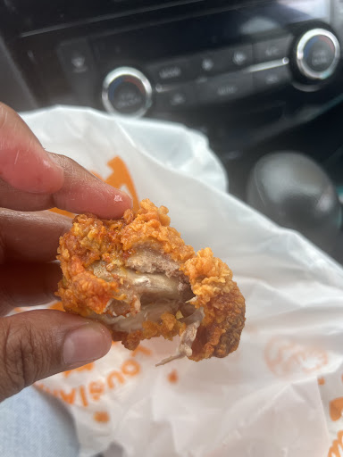 She responded, "with the chicken." and I said the "Breast, I want two spicy breast put into the box."