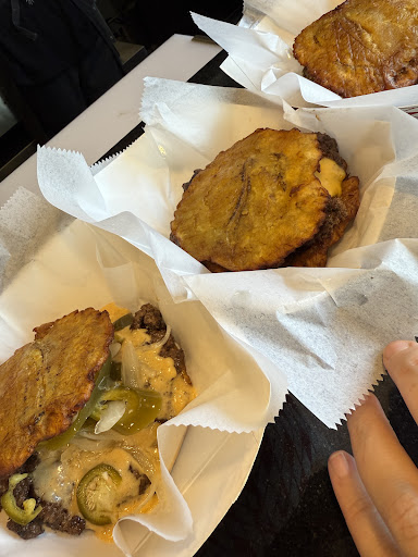 Read moreI was able to try all three smash burger styles and both the plantain and pan sobao “buns” with my family. We all agreed that the Aye El Amor with the plantain bun was the best burger by far. The Aye El Amor comes with their house pickled peppers and cheese sauce which are both truly so delicious (I usually don’t even like peppers).
