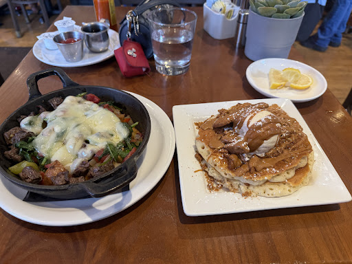 On my Debut visit recently,I ordered their Buttermilk Pancakes and a "Sunny Day" juice that they make themselves according to the Iffy female waitress I had.She said it was "Orange,Cranberry,& Grapefruit" juices combined.I got the small size instead of the large one.It was decent enough.A random and Iffy female employee that was bringing my pancakes to me Stopped in the middle of the floor on purpose using other customers that just came in the door as her excuse for doing so,Stood there for a minute or two instead of going around them to bring me my food immediately.She could've easily did this because the space in this restaurant is most definitely big enough for her to do so.I have NEVER seen anything like this before customer service wise in a restaurant.Their Pancakes taste just like the Pancakes they have at "Golden Nugget Pancake House" flavor and recipe wise.The only difference I actually see is the fact that portion wise the Pancakes here are maybe a little bit bigger for the three stack of them they offer you.I guess if you must CLONE another restaurant make sure it's one that I like.At least they had sense enough to serve them to me freshly hot.The Pancakes they gave me was so freshly hot,I saw the steam or smoke of them going in the air like a chimney.That's what I am talking about.On my subsequent visit today,I ordered their B.Y.O. (Build Your Own) Omelette.My ingredients were spinach,tomatoes,mushrooms,mozzarella cheese,and turkey sausage.That came with some "House Potatoes" that was also NOT good too unfortunately.Almost HALF of my food I ordered on my subsequent visit I didn't eat.The male waiter I had asked me if I wanted to take the rest of the food I still had on my plate home and I said NO.I chose their mini waffles to go with this,but they wasn't brought to me freshly hot at all very shockingly.A random but Iffy female employee brought me my mini waffles,but on purpose she Stopped in the middle of the floor to talk to another random male employee,making me wait almost two minutes or more to finally deliver my mini waffles.Once again,I have NEVER seen anything like this before customer service wise in a restaurant.That's multiple random and Iffy female employees more concerned about other customers and employees now instead of giving me the genuinely good at least customer service all customers truly deserve.I told my Iffy male waiter I had today that they wasn't hot and they took them back.No more than five minutes later,another random employee (another Iffy female employee) more than likely brought me the exact same mini waffles they gave me the first time.The only difference I felt was a slight warmth on these mini waffles this time,NOT some fresh and freshly hot mini waffles that they actually should've brought to me in the first place to begin with.However,the mini waffles was the best thing I ate today taste wise but only by default though.I also ordered their "Red Grape" juice today and it was fair enough.Another Iffy female employee on purpose seated a couple that is my racial demographic with a very disruptive baby right next to me table seating wise.After being tortured by this baby for about 10 minutes or more,I asked my waiter if I can get another table.Extremely Shockingly after he asked the female cashier what she thought about that,I got lucky enough to get seated at another table that was more than a social distance length fortunately.I couldn't get up fast enough from that first table I chose myself.The vibe I felt overall today on my subsequent visit socially was NOT the vibe I at least thought I sensed from my debut visit immediately after I came in the door waiting to be seated for a table of one.I think I felt seen or acknowledged at least on my Debut visit with a decent or fair greeting.On today's subsequent visit,I was so invisible I had no choice but to pick my own table waiting to be seated respectfully.There wasn't even a sense of a warm or welcoming greeting today.Was the acknowledgement I saw on my debut visit a Mirage??? TOO Many...