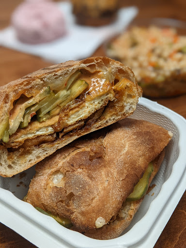 Fabulous new sandwich restaurant. Friendly staff and owners (chef Becca and Cam) doing their best to serve their customers. Recommend order at least 30minutes ahead before pickup food. Order food online. There is very minimal space for sit-down and currently not available for sit-down due to COVID. They are right on the the dot when you pick up or wait in the restaurant for your order. They offer a diverse type of sandwiches including 3 vegetarian sandwiches and few sides. The chefs are supporting local businesses and local farms to provide the fresh ingredients and breads. We ordered the Cubano Tofu Sandwich is an absolute must or get the non-vegetarian Cubano sandwich. The veg version consist of the best local Phoenix Beans Tofu, Pickle Prince pickled is surprisingly good, Chipotle aioli, local swiss cheese, and mustard butter on a truly warm grilled fresh ciabatta buns from pHlour Bakery. Also, ordered the Roasted C.A.M. which is filled with farm fresh roasted carrots, sliced apples, and mushrooms including fontina cheese and basil aioli on ciabbata buns. It was a pleasant surprise the combo of veggies worked well with the apples and aioli. We also ordered a side dish of the scrumptious Israel couscous mixed with carrots and broccoli. Lastly, the desserts is a must to try. We selected two tuber donuts that is made with wheat, potatoes and fried in clarified butter. The Pinky Duster which is sprinkled with yummy freeze dried raspberries sugar. Truly delicious especially if you like berries! The Fries in your Frosty is worth eating as well. Chocolate ganache glazed topped with crunchy potato fried flakes. It taste like a sea salt chocolate donut. Both donuts took us by surprise including the sandwiches. I hope they get to expand into a larger space for more indoor...