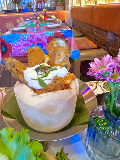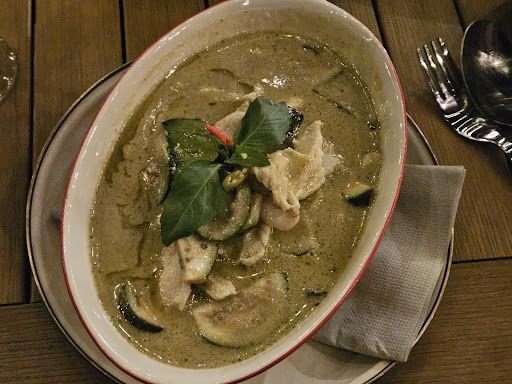 October 2025 This is a new Thai place in the neighborhood, which was recommended by the neighbor. Overall, we really need a better variety of Thai regional cuisine. After traveling so much in Thailand you get used to a very distinct flavors in dishes. We had our hopes up! The food: fancy Thai names, but all main staples. May be 3 or 4 unique dishes. Appetizer wings was very small, expensive...and it was wings....lol Next diah green curry - not possible to eat, very salty. It is -2*. Seafood combination - was a total mess. It was smothered in goo and very sloppy presented, with little seafood in it. Do not order at $28! And finally - a regular pad Thai. Good. Lovely environment with two decorated rooms and a heated patio. Steer parking - difficult to find, zoning around. Service: very pressured and overwhelming. Took a wrong order. BYOB is a plus at $2 per glass. Love the grandma's wall paper. Very similar to my family beach...