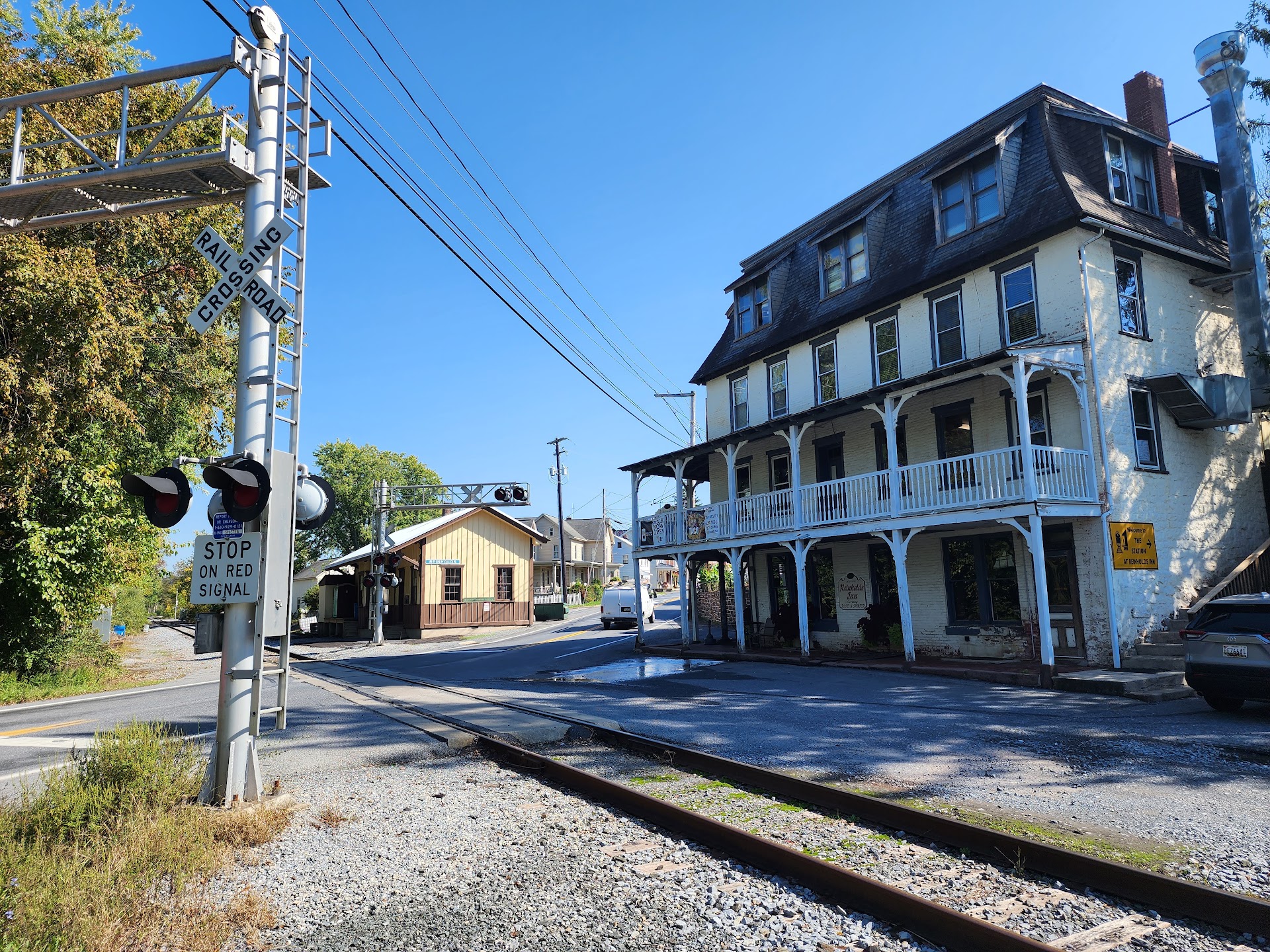 What a cool surprise in our travels today. There was a man working on the train engine today. There's no missing this building on the way...