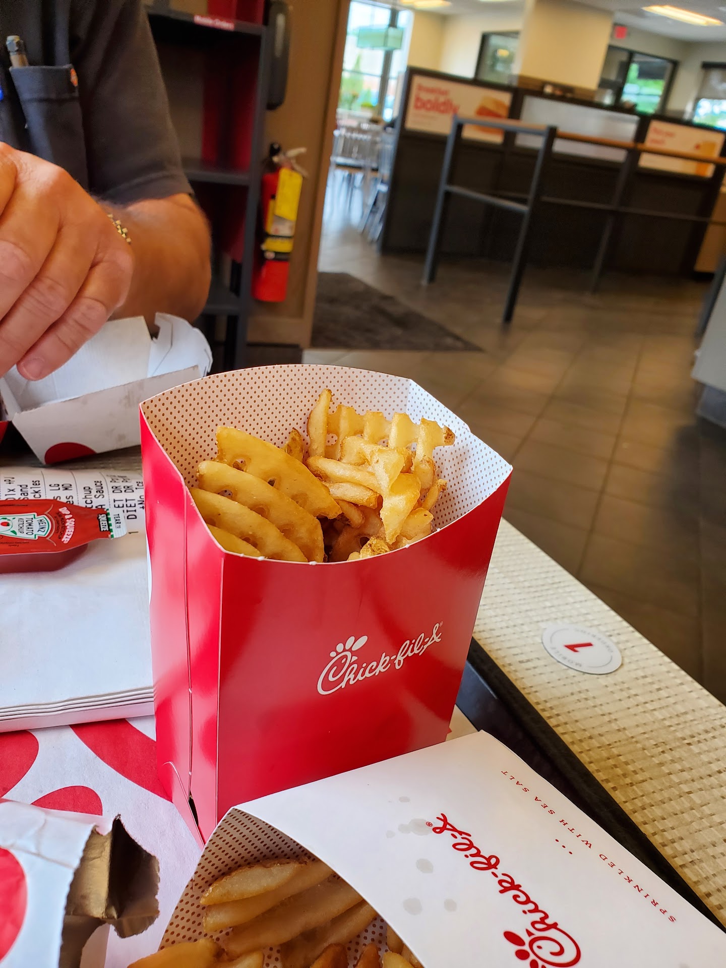 I am a door dasher. I have never picked up a dash from this location. Standard policy is walk in and pick up from rack. I walked in and waited 10 minutes for someone to address me. I finally asked they pointed to a sign and said must use drive thru. I said oh I am sorry I made a mistake, can you hand me the order....no was the reply go out to the drive thru. So I asked the obvious... your drive thru line is insanely long, I made a mistake, can we do right by the customer and just get poor Gavin his food. We'll thinking after years of customer service that the customer would win out, the smirk on the teen age managers face and sing song voice said....no, follow our policy. I asked for another manager and someone else came over and said unfortunately no...we will not be handing you the order please go get in our really long drive thru line. So I was throughly annoyed at the poor customer service and asked quite loudly if they ever made a mistake and since they are so perfect let's just penalize a paying customer. I proceeded to wait for a cancel option in the dasher app and was standing quietly reading a book on my phone while reaching out to their customer service when 2 police officers cane in and told me I had to leave the premises. Now, that is fine by me but really is that a way to handle a paying customers order? Is it an appropriate use of our police force, to waste their time coming to the store when, yes I mayy have loudly asked them if they were perfect and where did they learn their customer service skills before again standing there quietly on the phone with their customer service I mean they clearly saw me waiting for several minutes, why make me wait another 10 15 minutes in the drive thru while the customers order gets stale and cold....Ice melts in drinks. Another manager was called in and was standing there doing nothing but laughing while police were called. Such a viscious threat, someone who expects a higher level of customer service then they were willing to provide. How hard would it have been to say, you know what, let's take care of you today but going forward this is how we operate. Instead let's gain amusement by calling the police and wasting their time. Horrible service, horrible location, I will never spend a dime in Chick...