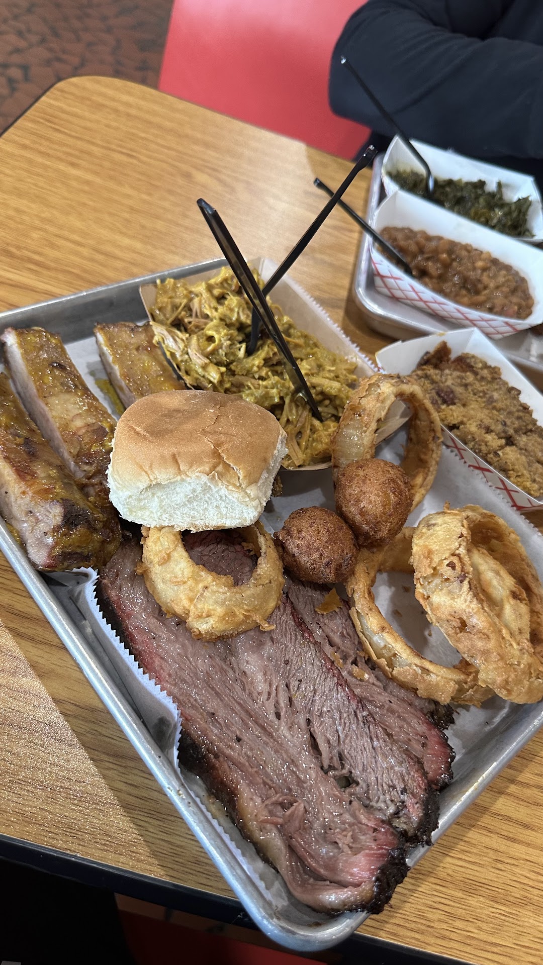 Read moreEverything is overpriced. I got the pulled pork tray and it’s one of the basic take out trays with a big section, and two smaller, side sections. For $12 (plus tax) I got two sides and the pulled pork. They put a small scoop of pork into one of the smaller sections, the okra I ordered in the other small section, and then the Mac and cheese went in the biggest section. For the price I was definitely expecting a larger helping of the pulled pork but after trying it, I guess I’m glad I was given a smaller portion. They ask you what kind of barbecue sauce you want at the window which doesn’t matter because the meat is already drowning in the mustard based sauce when you get it. My mother makes better pulled pork in her crock pot with the McCormick seasoning packets. I had to spend another $4 to get a drink, which is outrageous. After tax, my total was near $17. On top of all this, even though I went through the drive thru, the receipt still had a line to leave a tip. Maybe if I dined inside and had a server, leaving a tip would’ve made sense. Definitely don’t recommend and I don’t see myself going back to a place like this when I can get better service for the same cost at any other...