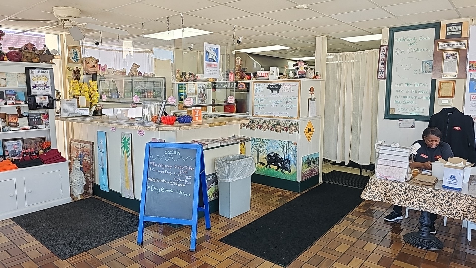 Read moreSuper friendly folks and great cozy barbecue neighborhood atmosphere. I have been twice, just to make sure I could give an honest review. I travel five states and eat barbecue every week. Eating and cooking barbecue is my hobby. For the portions and the establishment the food here is expensive. Two small dinners and two cans of Coke almost $30.00 and served in a styrofoam box. I can go in any city in SC and find an all you can eat barbecue joint for about $11.00 each and that includes desert. For drinks we were given two cans, no cups, no ice. Heck, I can get cups and ice at any gas station. The last visit on Friday night only two tables were being occupied and the wait was very long. When our food did arrive they forgot my wife’s order of beans. It took us awhile to get the attention of someone before we could ask for help. We were told there was an “up charge” for ordering pork and beans. After paying we’ve were never offered a receipt. What’s up with that? The food was OK, but not worth $30.00 eating out of a to go box. Very friendly owners, but we left hungry. Had to stop next door at Zestos and fill up on ice cream ‘cause we had no...