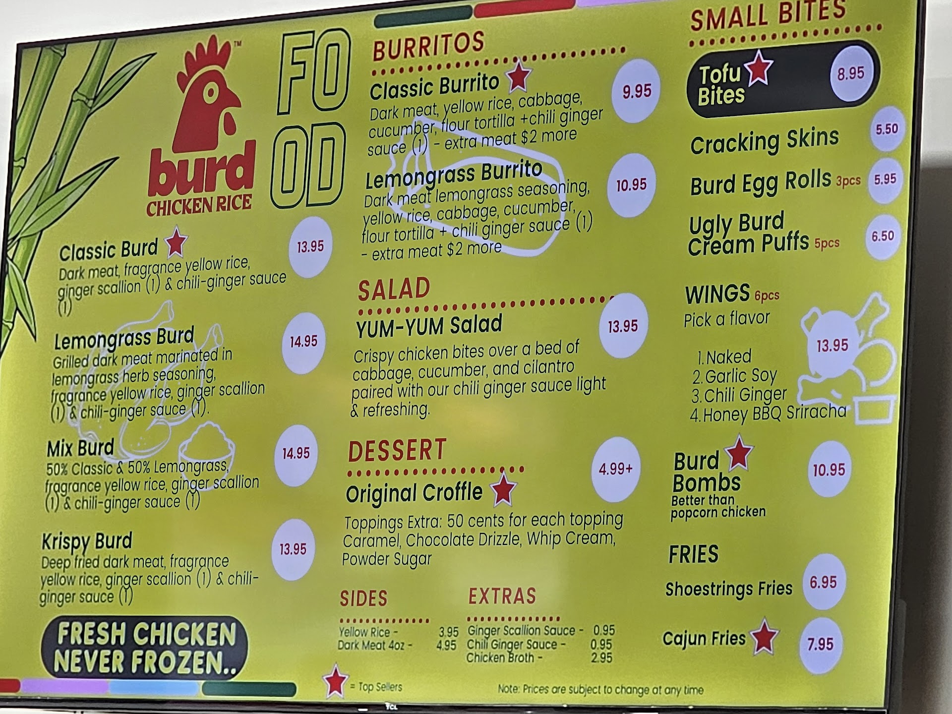 I had the original burd and my sister had the mixed burd and both were awesome. The mixed burd has an added lemongrass chicken and it's fantastic. The key is the ginger based sauce and it's thick and perfect. The thickness helps it stick to the garlic rice and chicken better. The scallion herb with oil is also carefully balanced and adds texture when mixed with the rice. Burd chicken rice is highly recommended if you're into chicken, southeast Asian cuisine or simply good wholesome food! You're missing out if you don't make it out here. The cane drinks are perfectly sweetened. The kumquat cococane drink was a phenomenal mix between sweet and citrus. We ended the meal with their waffles and it was warm and crisp on the outside and soft and a bit chewy in the middle. The best part is the people are kind hearted and always willing to share how they found their beginnings and how they're committed to good,...