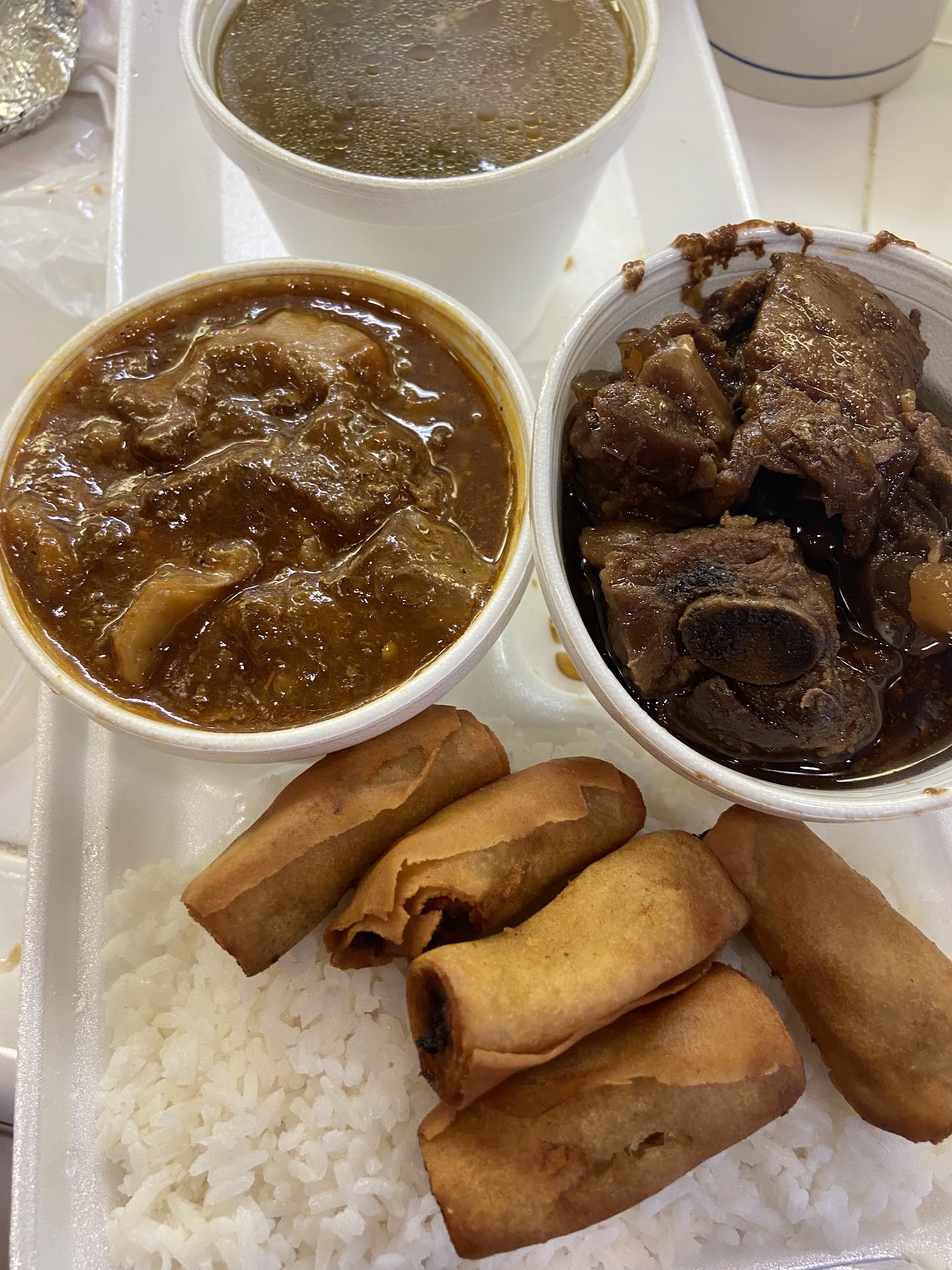 Place was empty around 5pm with chairs on tables like they were ready to close. Steam trays looked full, except they were out of Lechon, my fave. Really wanted spicy goat though, so ordered that with pork adobo and some lumpia. Spicy goat and adobo was very good, but lumpia was soggy. Must have got the last of an older batch.