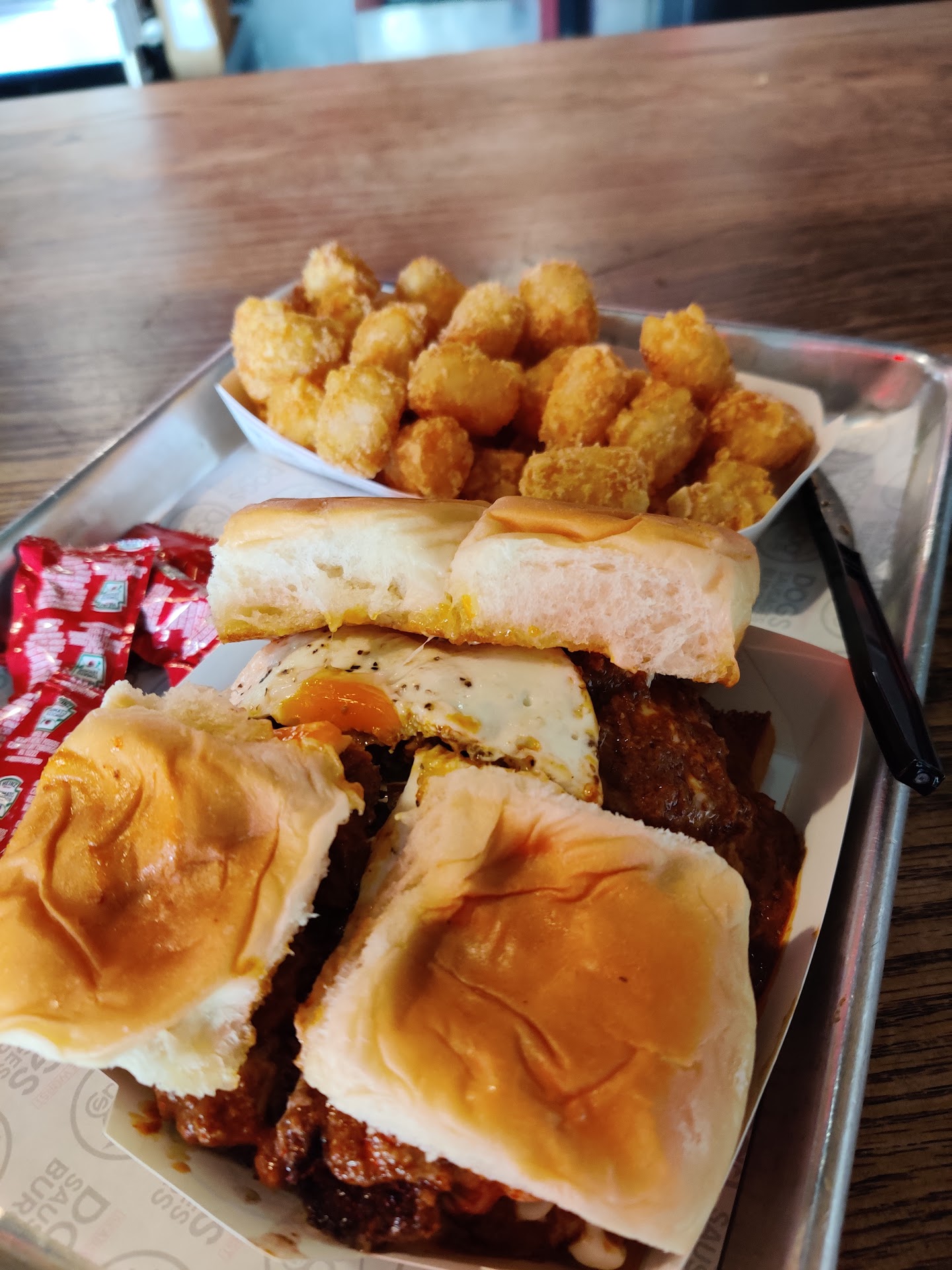 Read moreThis place has really good hot dog slash sausage slash hamburgers and the sides are excellent is well. I've had the other Maria and the Holy a goalie I'm a several others in peace to turn out to be my favorite so far. One thing I like is it they will cook a hamburger rare and they use a combination meet recipe for the actual patties for the hamburgers and they have some really interesting sausages. What's have a really excellent corn dog and besides I would particular recommend are the onion rings and the chili tater tots. Very crisp and crunchy. They also will put a lovely runny egg on your burger... or anything else. The staff is very friendly and courtious, and the expedite really quickly. All this is don't let the attention to detail in flavor and the ingredients are wonderful which adds up to really great food. I would definitely reccoment this establishment... oh yeah and am very good Deborah selection...