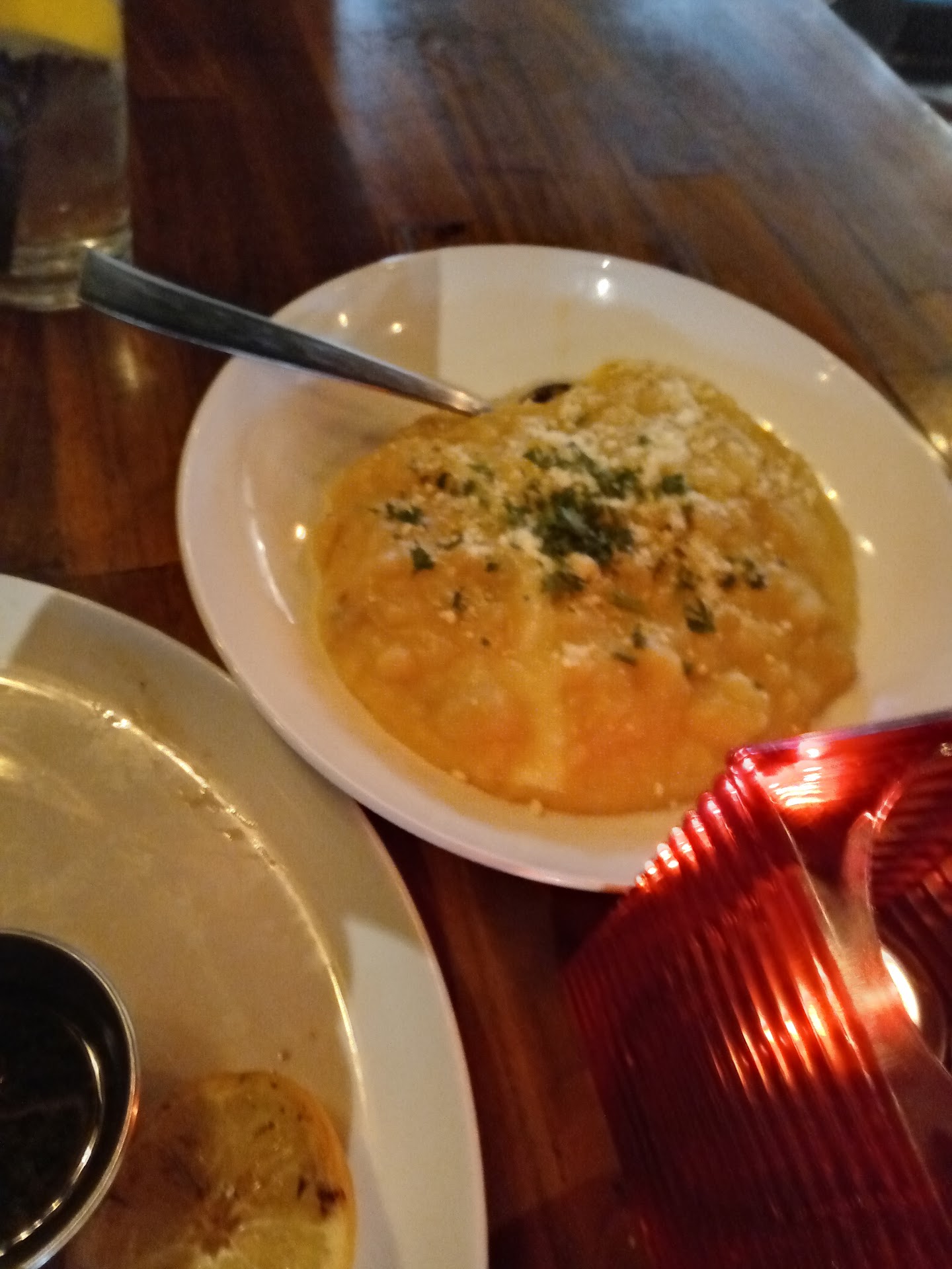 We made reservations for 7pm but we arrived early at 6:30pm. They seated us promptly. We were offered complimentary bread with 2 dipping sauces. For drinks we ordered the Smoky old fashion and a virgin strawberry basil margarita. Both drinks did not meet expectations. We ordered the smoky old fashion for the presentation. They bring it out to you in a box covered in smoke. The waiter who brought it out didn't even bother to get our attention when he arrived at our table and just took it out of the box. We missed the whole presentation. When he saw that we wanted to take a video, he just put it back in and took it back out quickly but by that time the smoke was already gone. If we didn't care for the presentation we would have ordered the regular old fashion and saved a dollar. The old fashion taste wise had no smoke taste. The margarita was unacceptable too. It had a light salty taste. There was absolutely no sugar or syrup. Not sweet at all. I didn't even end up drinking half of it.