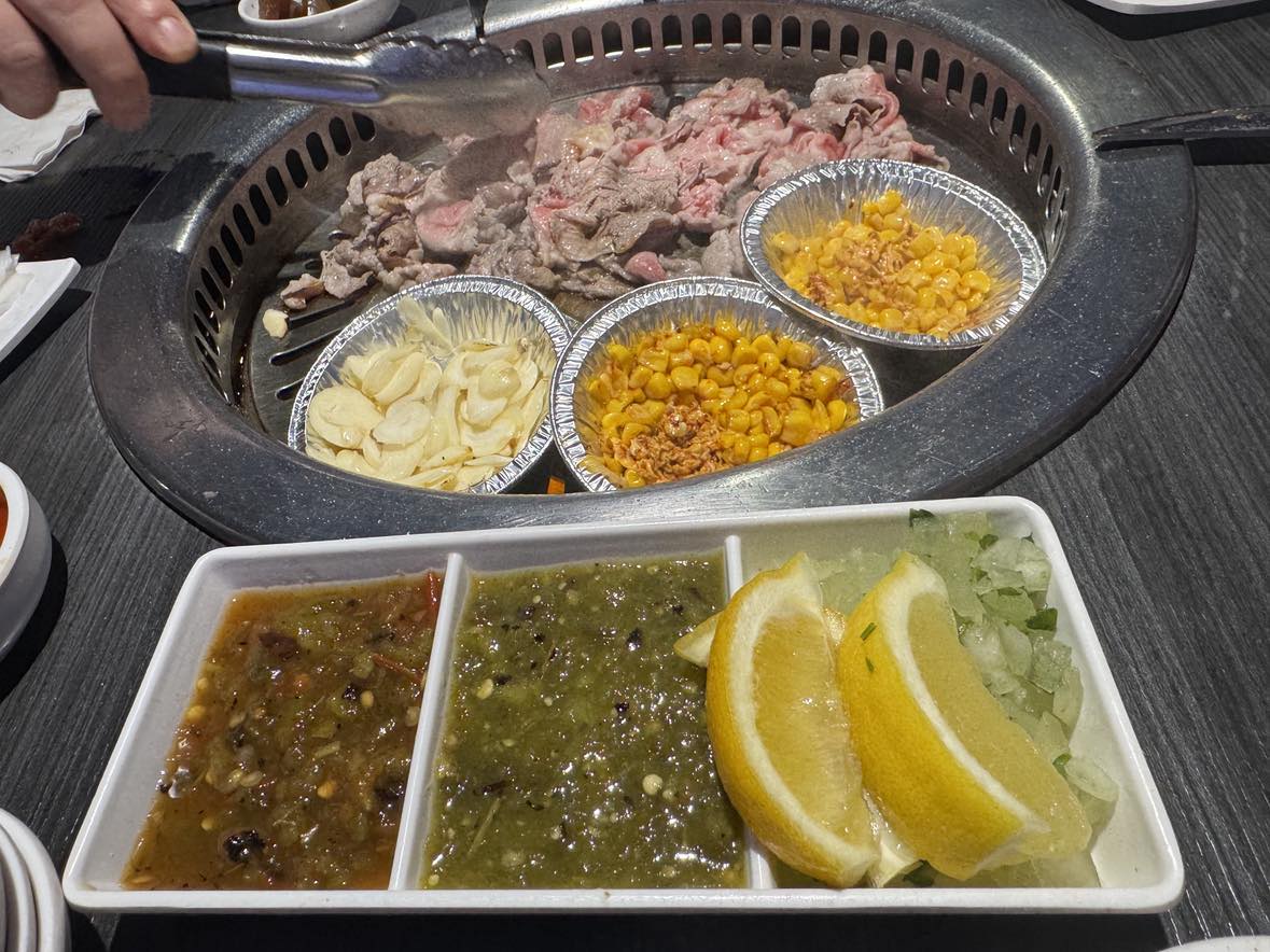 Went here for Christmas with a big party of 20, so take what I say here with a grain of salt. I had arrived an hour and half early to let them know of what was going to happen and they werenât busy at all. I gave them my number and left. When I had come back with about 4/5 of my party, I was told we had to wait until our entire party arrived which isnât what I was previously told. However, they did seat us anyways and made us aware of the 2 hour time limit. They split our party into two tabletops of 10, and immediately there was no communication between servers because within 15 minutes table A was eating and drinking having a good time and table B had nothing. It wasnât until 30 minutes into our 2 hour time limit that they turned on the other tableâs grills. It wasnât until 50 minutes in they even brought some semblance of food. However, it took table B 5 tries of reordering to get their drinks and basic things like sauces and sides. Half of our party didnât even eat. One of the grills didnât work, even though it was all the way up. The servers felt like they were new and they made mistake after mistake of miscommunication. As an example, one of our patrons ordered the sauce that comes with the potstickers (just 3 orders of JUST the sauce) which was verified by the entire table and cut to 25 minutes and they bring out 3 orders of the potstickers without the sauce, the complete opposite of what was ordered. Iâd come back if they didnât favor patrons so heavily. I understand, as a server, I definitely has favorite customers and unfavorite, however that shouldnât affect quality of service. Wonât be coming back for awhile and terrible service all around. Only reason it gets a 2 is because of the food which came in small portions...