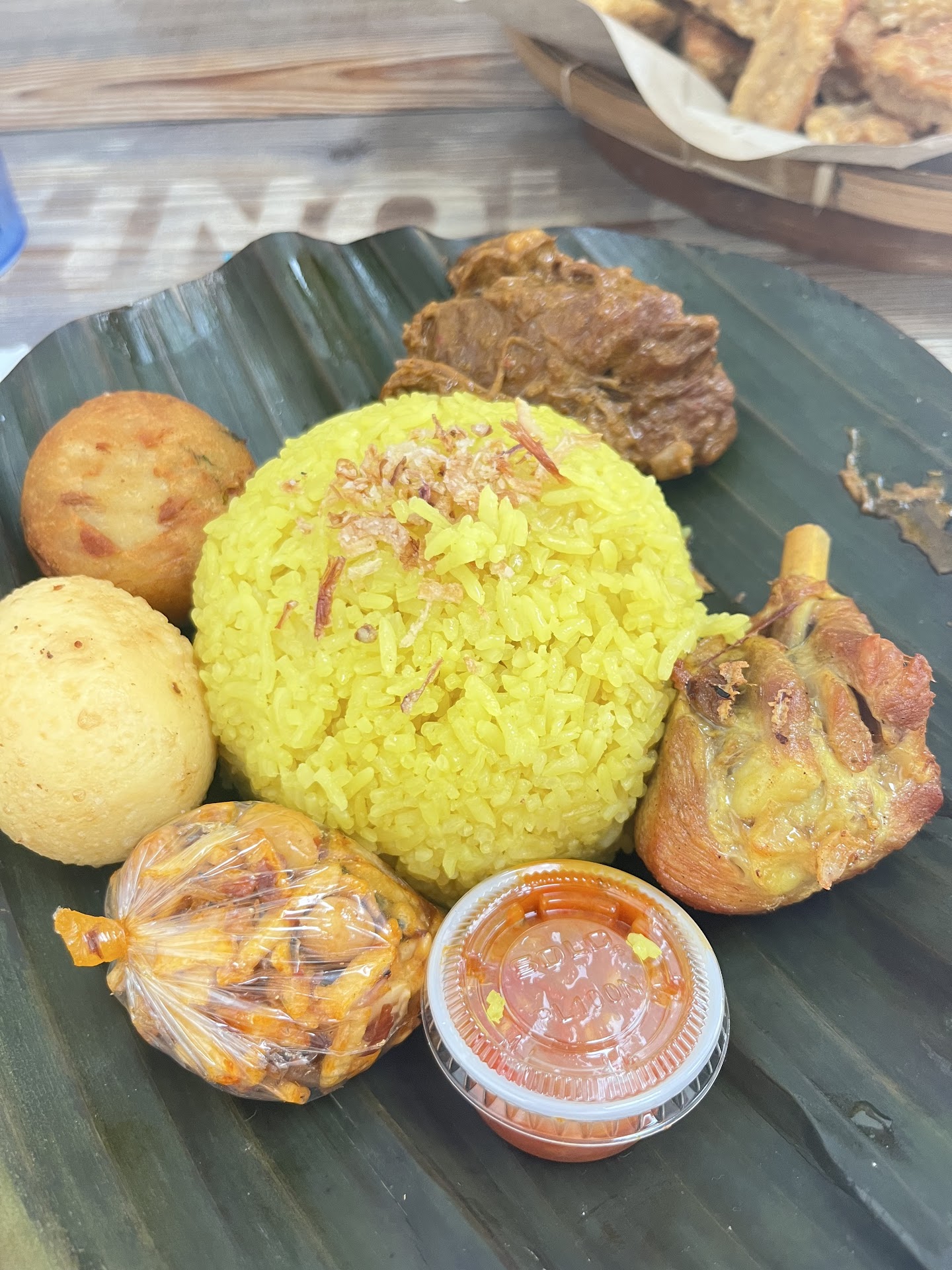We had the #19 Nasi Bunkus Padang. It is a rice dish wrapped in banana leaf. It wasn’t as spicy as we were told and that’s a good thing say tolerance for spice is low. It was a decent dish. There was such a mix of everything it was hard to tell what’s what lol.