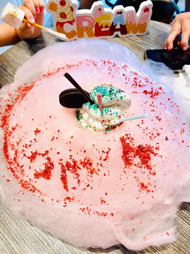 I am attracted by the cream cloud when I passed by this place and decided for try it out. It was the best looking cotton candy with some ice cream and toasted marshmallow I ever tasted and witnessed. The service was also great. Wait time was extremely fast and employess was nice and respectful. The quality of the cotton candy goes above the rubric. It looks glorious and the taste is even superior. I also got my entire order 15% off because it was there soft...