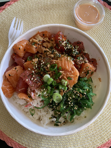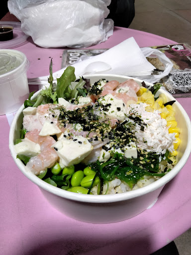 Read moreLocal family-owned customizable poke place. There are two sizes (3 scoop and 5 scoop), with a variety of fish types. The prices are very fair for the amount of food that they give. You can order on the phone or through GrubHub. There were also a couple of tables for outdoor seating. I tried the spicy salmon and spicy tuna, which was a good level of spice. You can get white rice, brown rice, tortilla chips, or mixed greens (or go half-half) as a base, with an unlimited number of toppings. There are a few other hot cooked food options as well as macaron ice cream sandwiches and drinks.