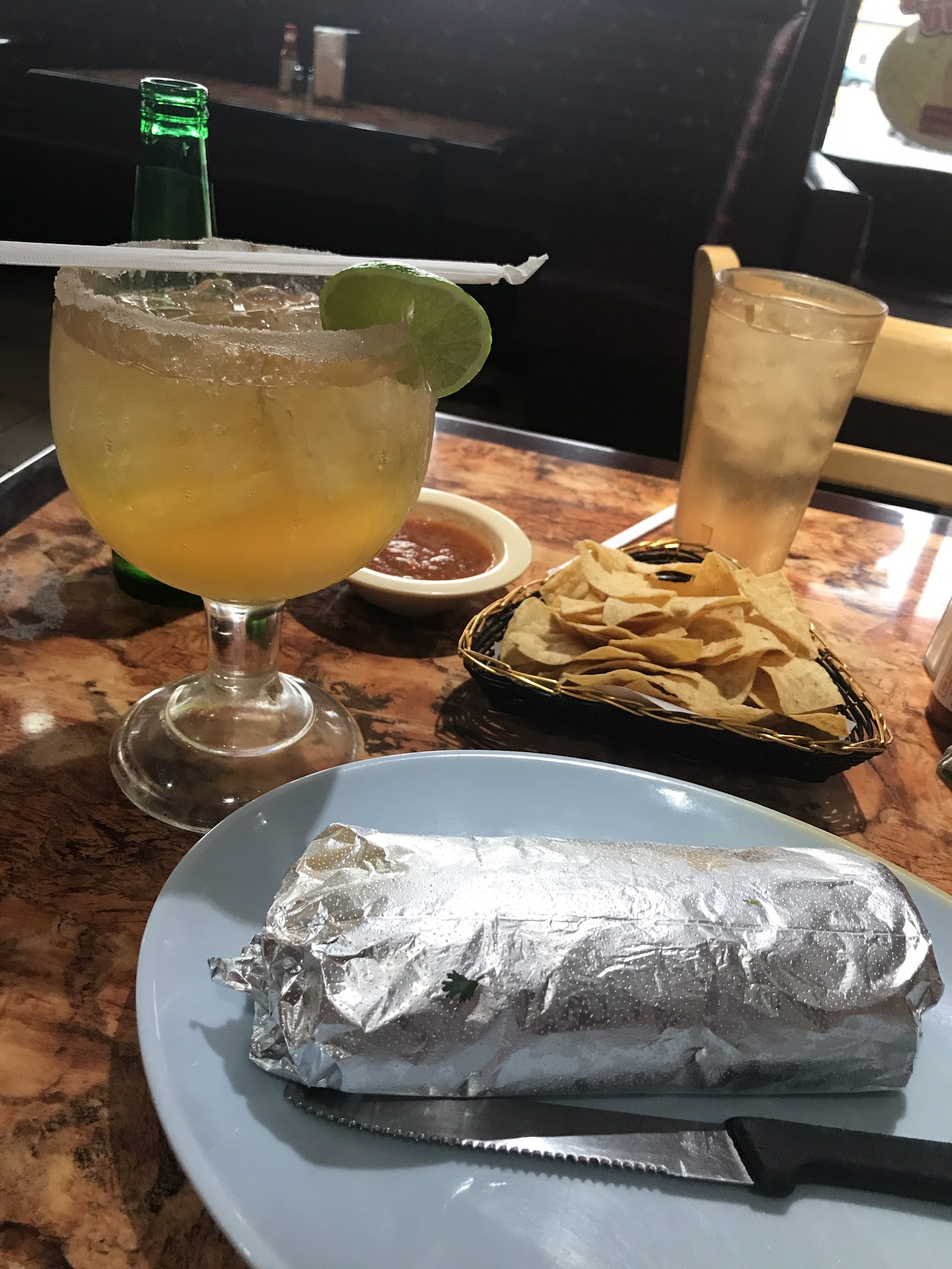 Read moreHubby and I went for a late dinner. This place was alive with full bar, the booths are spacious and comfortable, there are also tables and chairs for dining, plenty of TVs around the walls, jukeboxes were playing happy Mexican music and everyone there seem to have a good time. As soon as you sit down you are given a basket of chips and tasty salsa. The food was like homemade I ordered the 2 chicken enchiladas in red sauce (you can also choose beef and green sauce) and comes with 1 hard shell taco, salad, rice and beans. Hubby had taquitos plate with extra large horchata. The price is affordable. We had...