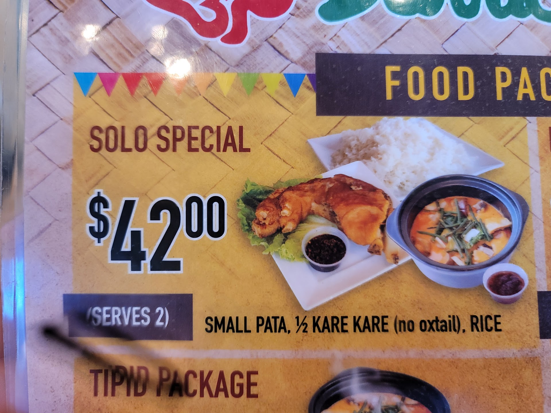 Read moreRepeatedly, the food here NOT good. Ordered traditional kare kare to go and first off, the order did not include bagoong. So had to drive back to get it. When we finally started eating, this dish was bland with no flavor and no distinguishing kare kare taste. How can such a well known Filipino restaurant for this dish continually serve this kind of c$&#? This isn't the first time, second, third, or fourth time I've ordered it with each time getting worse in taste. Wanted to give it a chance before putting up a review and now I felt a review is necessary before anyone else spends their hard earned money. This USED to be the best Filipino food in town and now, it is definitely the WORST. Will definitely NEVER eat their food again. Other food including their boneless milk fish was not good either so it's not just their kare kare. Would rather go to other point, point joints than to go to this "restaurant." Good luck if you...
