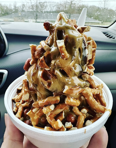 Amazing ice cream!!! Got the Edwards five sundae. Vanilla soft serve hand dipped in hard chocolate coating.. drizzled in caramel and peanut butter deliciousness.. sprinkled with heavenly pretzel pieces and SPANISH peanuts! I mean cāmon now?! They have a drive thru window! The staff was super friendly. Service with a smile! The menu was huge. I was eyeing up a banana pudding ice cream as well⦠my friend got a sāmores sundae with marshmallow topping and hot fudge. Great little place and I...