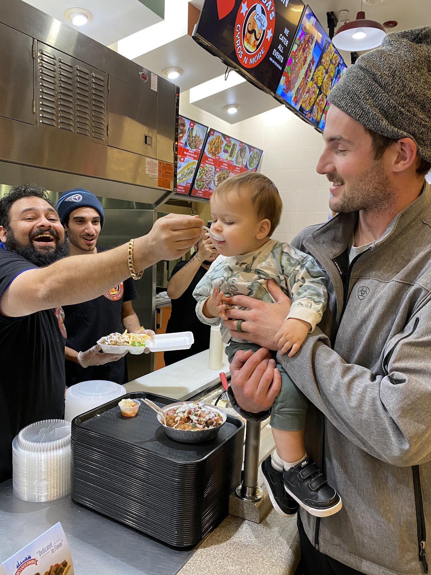 We walked up to a gentleman named Sam he was smiling ear to ear. This was a refreshing feeling . My husband and I was eager to look at the menu . Sam you could tell loves what he does and values what you think as well . He asked us what kind of foods we like and expressed what he felt we should try. He was so excited to get our responses . We came back to the table and said to each other who is this guys ?!? Someone actually cares what they are serving ??? They are delightful and excited 😊 just radiating which makes you do the same. Our food was amazing !!! I got a bowl of rice and chicken with my favorite cilantro… so fresh and flavorful “you get to pick what you put on “. My husband had big gyro and he wouldn’t stop talking about it . He thinks it’s the best around . He uses the word AMAZING 🤩.