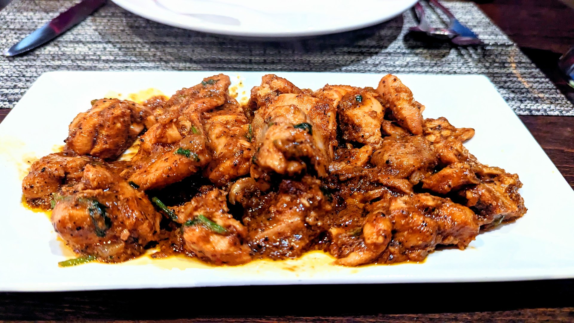 The Chicken Pepper Fry appetizer kicked off the night with a bang. Imagine succulent pieces of chicken, cooked and fried in South Indian style masalas and peppercorns, delivering an intense aroma and sublime taste. It was the perfect spicy start to our meal.