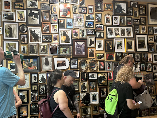 The interior is cute with lots of customer black cat pictures. We own a few ourselves though have never submitted pics. It's fun to look at the wall of voids.