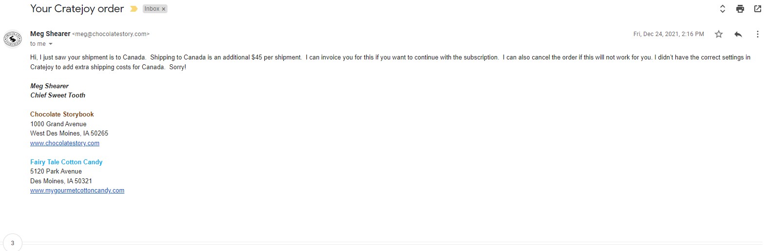 My boyfriend and I were incredibly let down by our experience with Chocolate Storybook. We had placed an order for a gift that was extremely important and time-sensitive, and we clearly communicated that we would be picking it up at 5 PM on July 3rd. This was confirmed in advance, and we were counting on them to follow through.