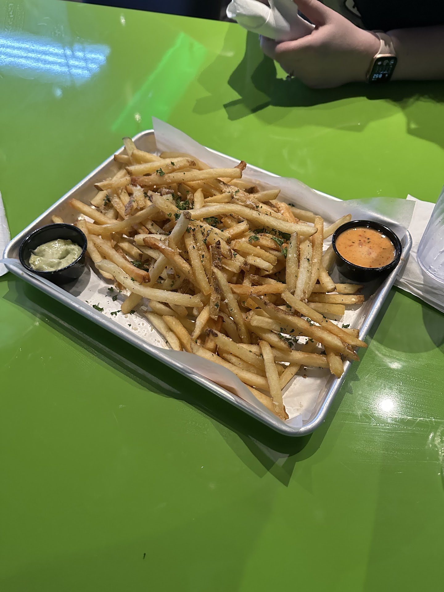 After everyone got their food, I asked the serve for my ticket. He asked I repeat everything I ordered so he could separate it. I understand not being able to remember everyone orders at a table so large in number, but that’s why you ask if it’s together or separate at the beginning to avoid this. I asked for my receipt after paying. I warned the rest of the party that the server is going to ask to repeat their order. Server spent over 10min trying to get peoples orders in place.