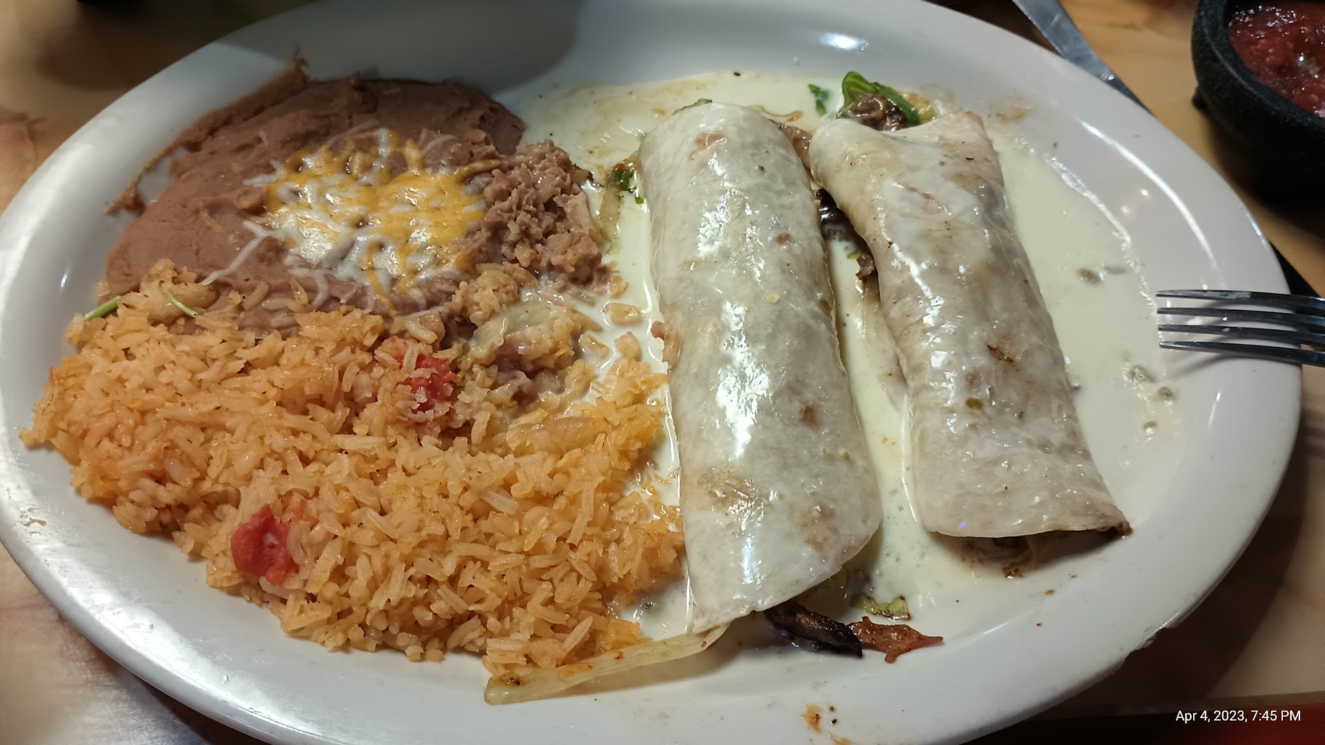 We both had chimichangas. I had chicken, my friend had beef. They were good although again, I got the flavor of their being fried in old grease.