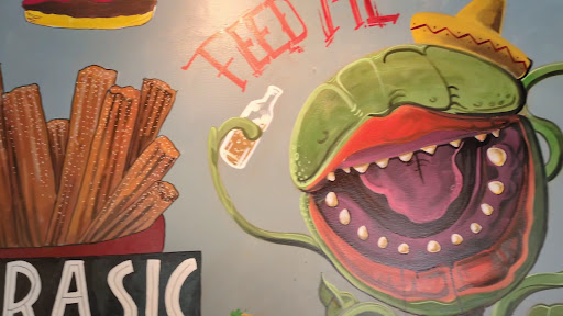 Aside from the food, I have to commend the incredible artwork on the walls. From the moment you walk in, the talent on display is truly inspiring, especially on the right side of the restaurant. My favorite pieces are the adorable "hola" taco, the humorous Audrey saying "feed me señor," and the delightful "Arturito" (R2D2). I recommend this place for a meal with...