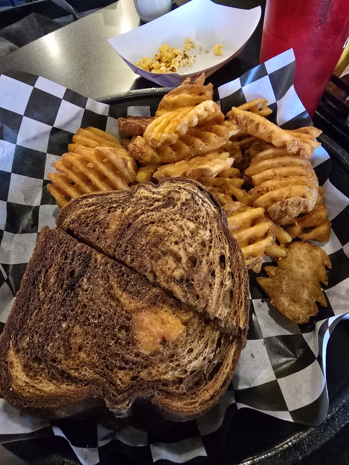 The free popcorn was a nice touch. $40 for our meals and pop and a bloody mary. My friend said she would try again, I don't...