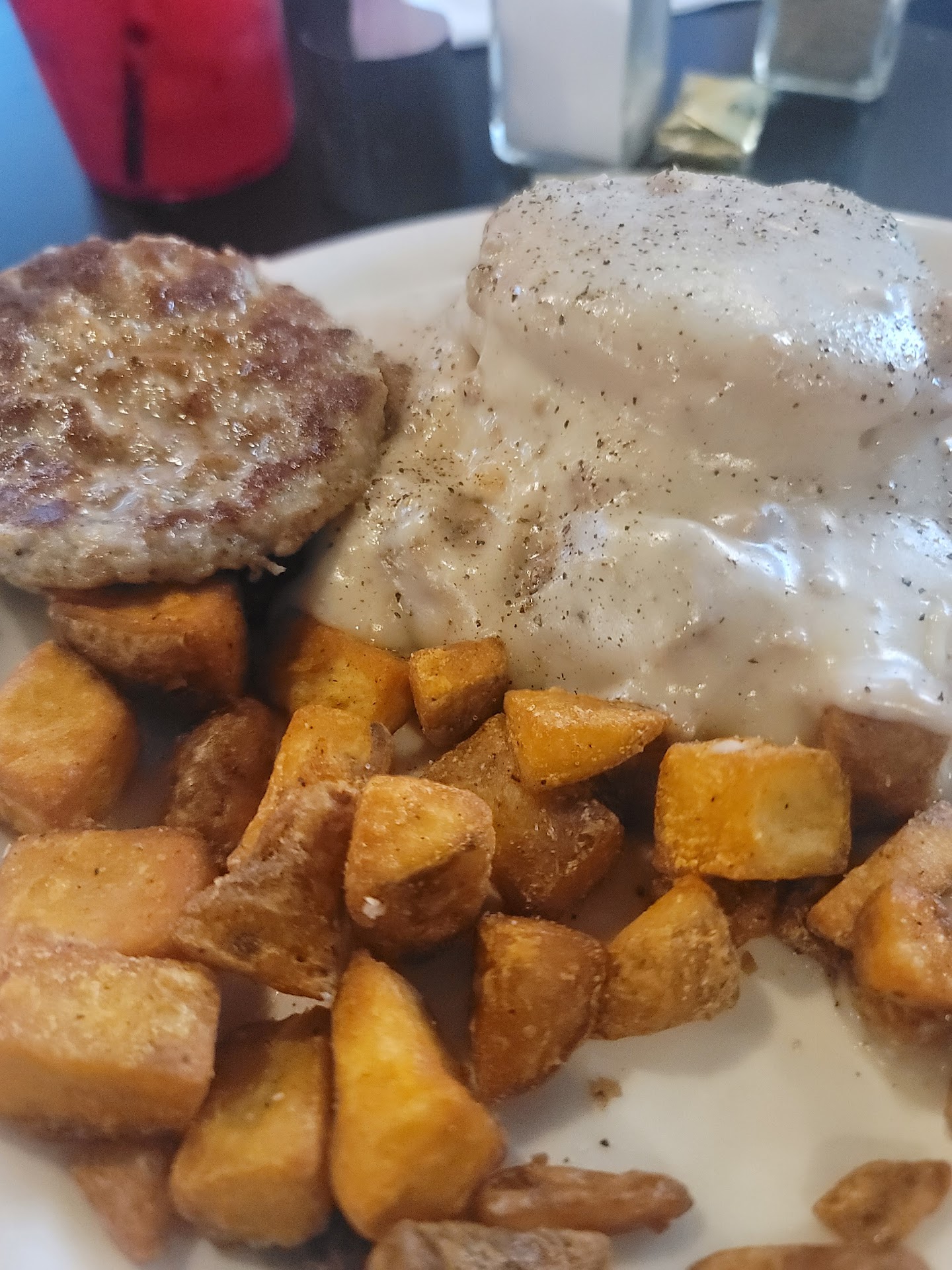 As for MY meal? Oh don't mind me. The sausage was so undercooked I couldn't finish eating it AND I've been up since 4am sick to my stomach (I ate nothing else to cause that; reason I have time to write a review because I can't work while wrapped around a toilet for several hrs).