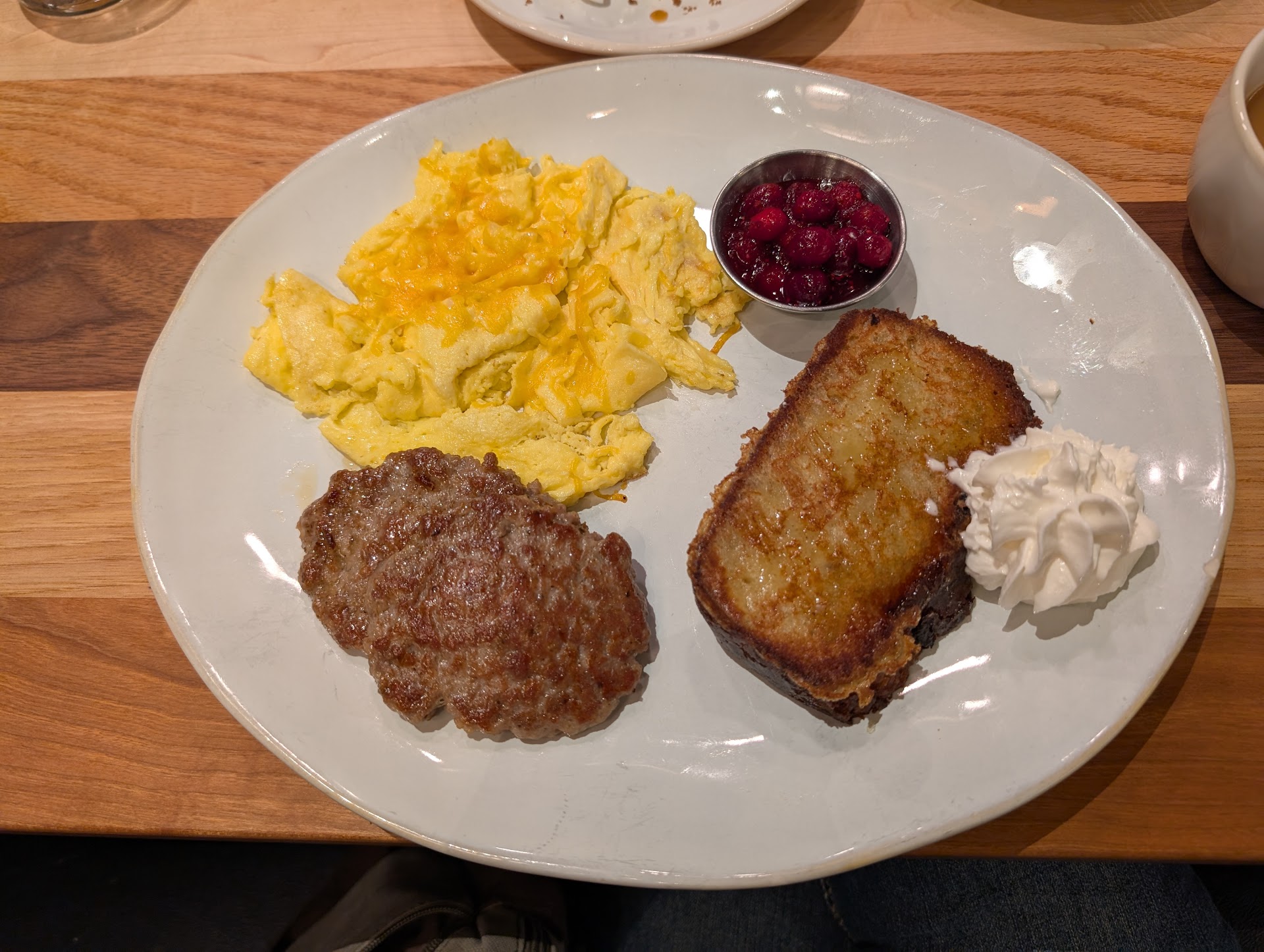 Read moreWe ate here in a group of 7 people on a Saturday morning, and checked in 2 hours ahead of time on Yelp. Our initial seating time was 10:24am, but we received a notification that our table would actually be ready closer to 9:55am - 10:10am. We arrived on time with our party and were told they were clearing off our table, and at a quick glance around the restaurant there were no empty tables. We waited until about 10:40am to be finally seated, without any update as to why it was taking so long and just being told "we're getting your table cleared now" upon asking again when we would be seated. There is no waiting area inside the restaurant, so the check in area was extremely congested the whole time we waited, and not to mention LOUD. When we were finally seated we were waited on quickly, but the restaurant was still extremely loud and the check in area was non-stop congestion of 10-15 people waiting at a time to be seated, with hardly any open tables in sight. The food was really good and fairly priced for what it was, but the atmosphere wasn't inviting and it was extremely stressful when we were waiting because servers were constantly trying to make their way through the crowd of waiting people and were constantly having to squeeze out of the way for them as we waited (plus there was hardly any room so we were basically waiting behind the hostess table already). Probably wouldn't come here again unless they start taking actual reservations instead of making people queue for a spot and not actually honoring the time...