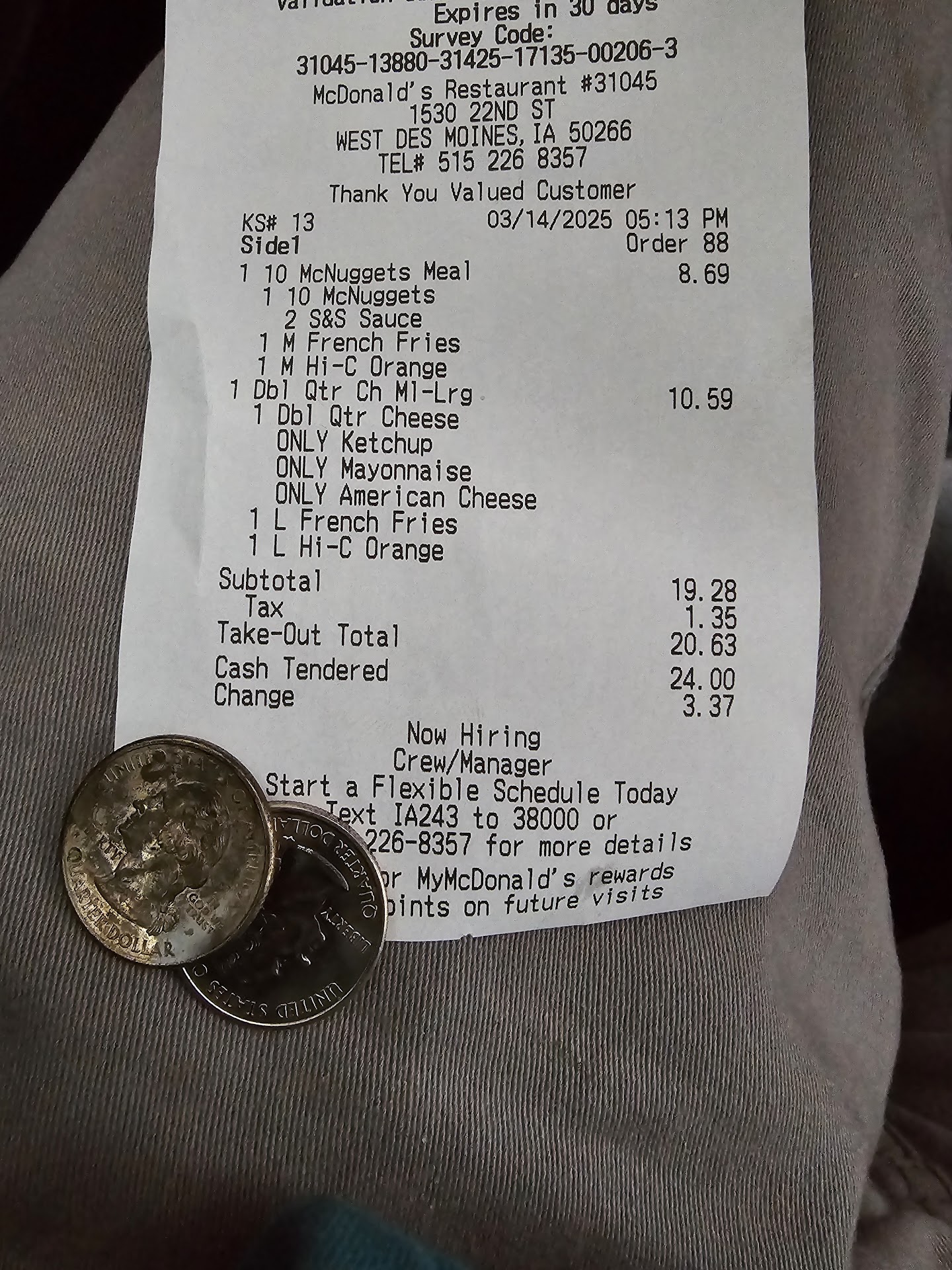 Read moreThe lady hispanic with color hair, put hispanic lady on register who barely understands english. She hiring hispanic who barely speak english. Manager came over and told me no I will not do that.. in custom your order. I WENT TO ANOTHER MCDONALD'S & HAD MY ORDER FILLED WITH NO PROBLEM. All others McDonald's customs my order, but this one. Customer service is ridiculous that I gotta pull into a spot. Just for 2 McDonald's ketchup only n small fries with less salt on it.